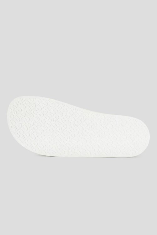 Детали: Женские белые кожаные слайдеры от Dsquared2 (Дискваред). Широкий ремешок с логотипом, закругленный носок, анатомическая стелька