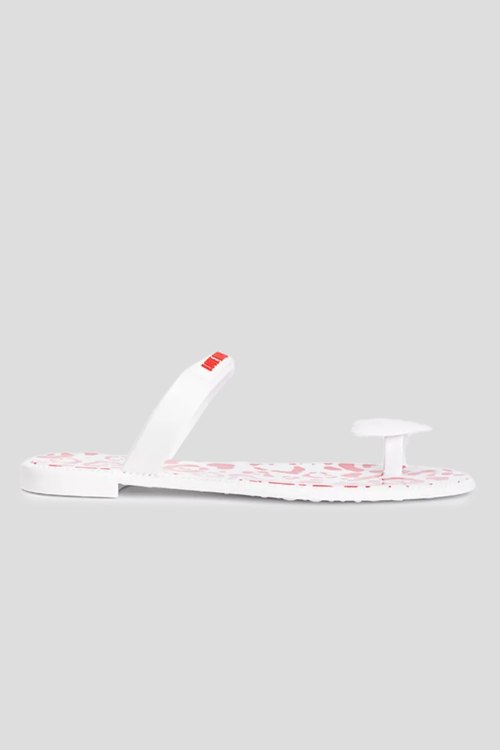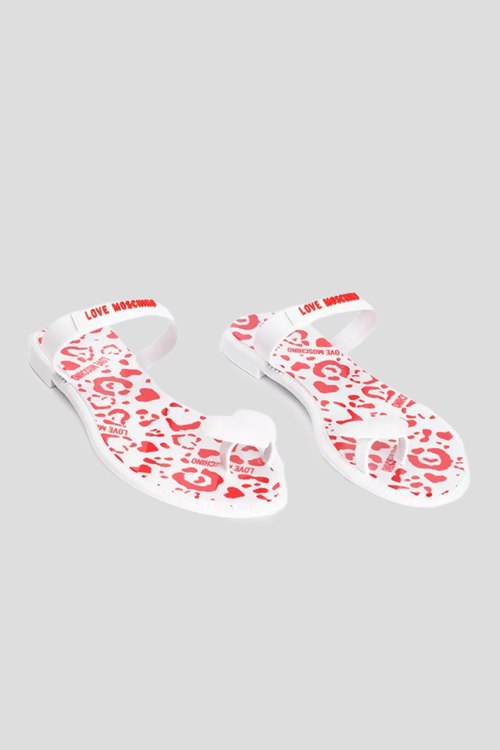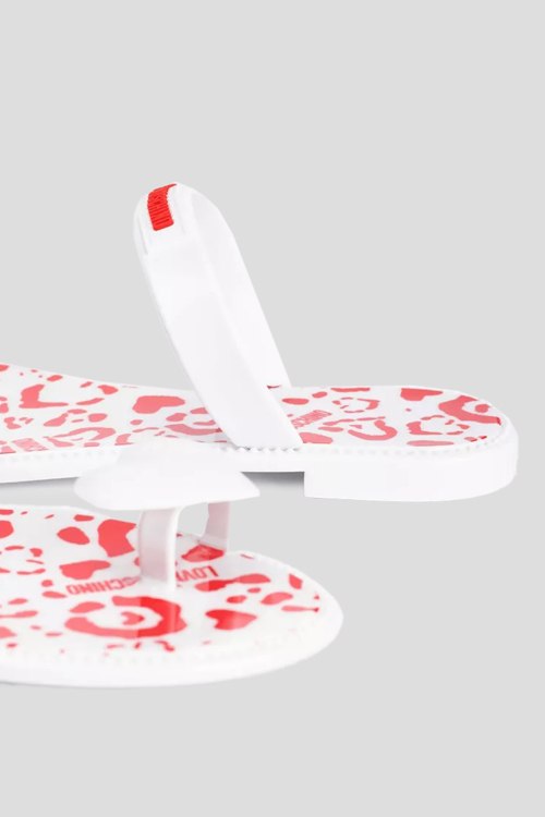 Детали: Женские белые резиновые шлепанцы от Love Moschino (Лав Москино). Ремешок с логотипом, закругленный носок, стелька с принтом