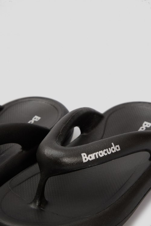 Детали: Женские черные вьетнамки из полиуретана от Barracuda (Барракуда). Закругленный носок, ремешок с логотипом бренда. Высота подошвы: 4,5 см