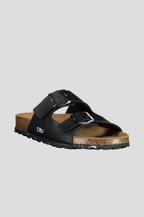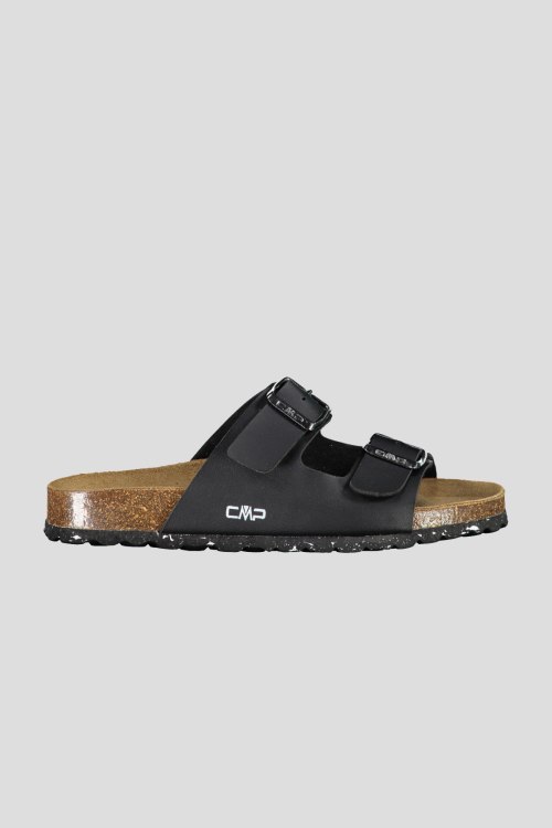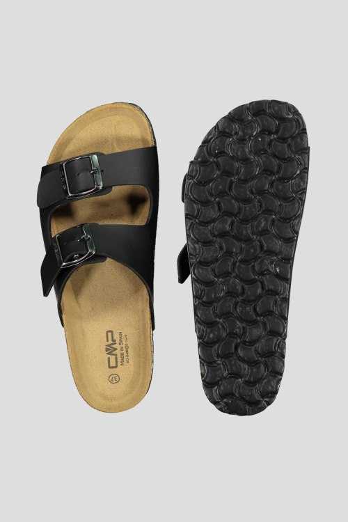 Детали: Женские черные слайдеры от CMP (СМП). ECO THALITA — удобная обувь без шнурков, являются частью нового проекта ECO, в рамках которого CMP стремится создать обувь с меньшим углеродным следом, подошва сделана из пробки (натуральный материал), а также на 30% состоит из переработанного EVA, верх выполнен из переработанных материалов на 25%, а стелька выполнена из замши для дополнительной воздухопроницаемости и комфорта