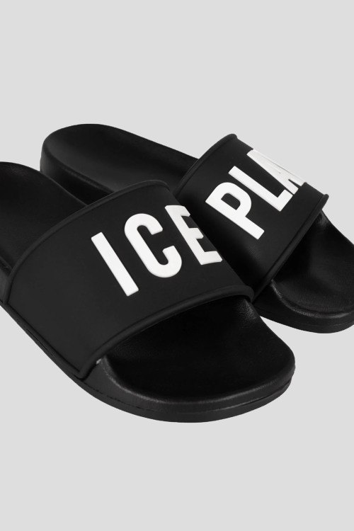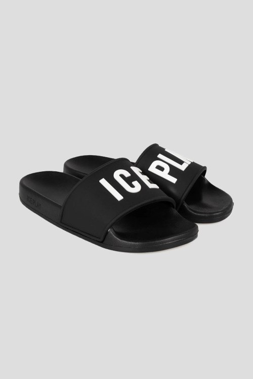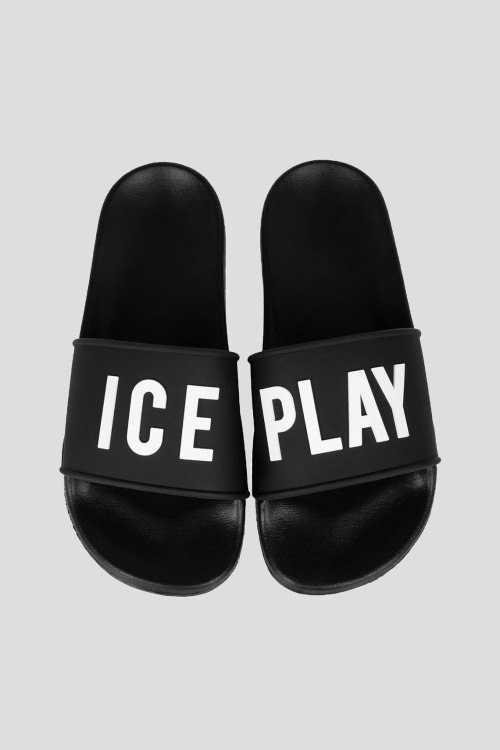 Детали: Женские черные слайдеры Ciabatte из синтетического материала от Ice Play (Айс Плей). Широкий ремешок с логотипом, закругленный носок, анатомическая стелька