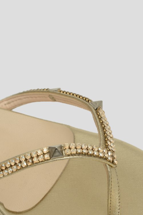 Детали: Вьетнамки из натуральной кожи. Однотонная модель, тонкие ремешки, плоская подошва с небольшим каблуком. Декорированы стразами
