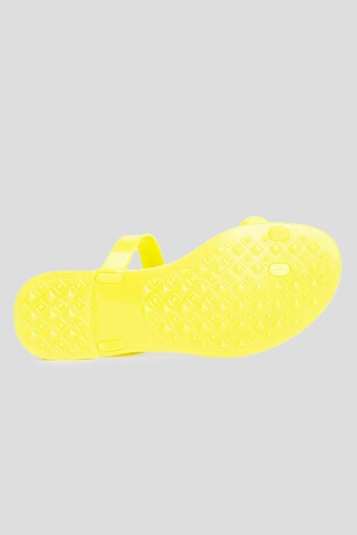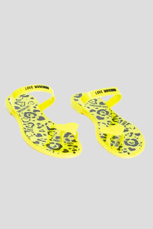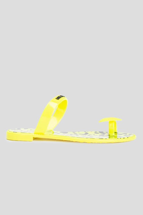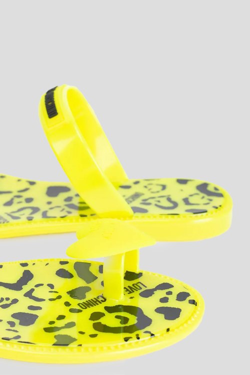 Детали: Женские лимонные резиновые шлепанцы от Love Moschino (Лав Москино). Ремешок с логотипом, закругленный носок, стелька с принтом