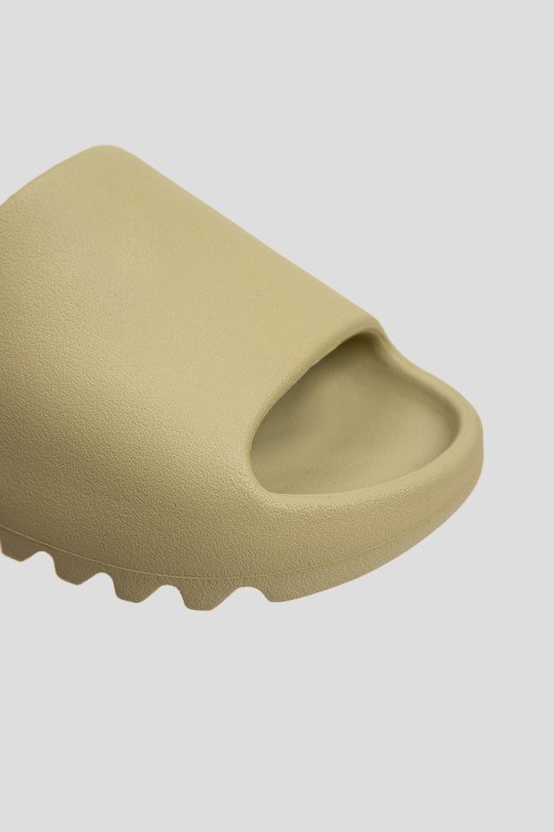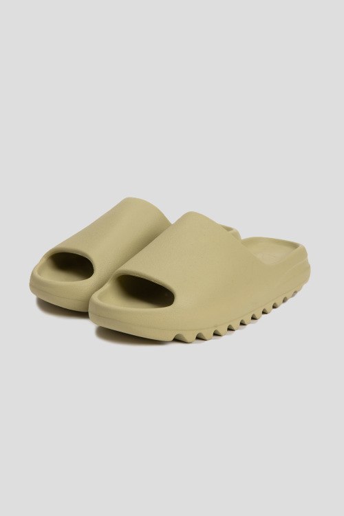 Детали: Женские оливковые слайдеры Slide Resin от Adidas Yeezy (Адидас Изи). Модель из прочного материала, закругленный носок, стелька с логотипом, ребристая подошва
