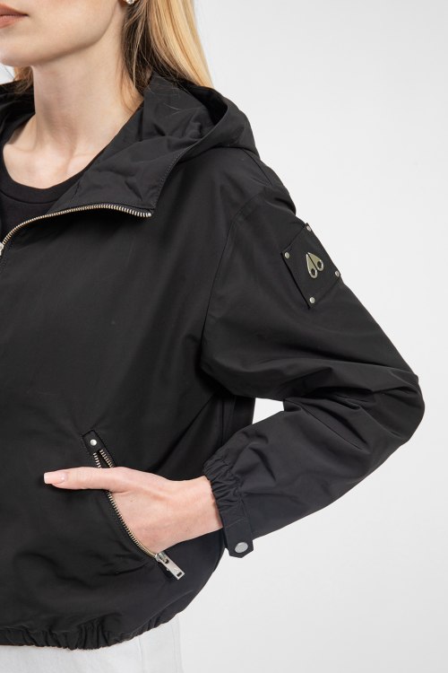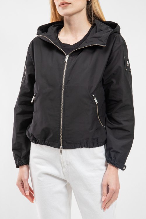Детали: Женская черная ветровка от Moose Knuckles (Мус Наклс). Вшитый капюшон, нашивка с логотипом на рукаве, боковые карманы на молнии, застежка-молния, классическая длина, манжеты и нижний край на резинке. Размер на фото XS