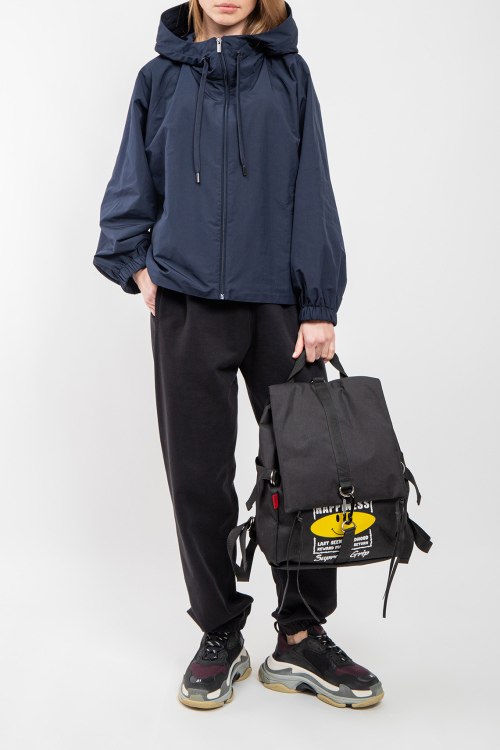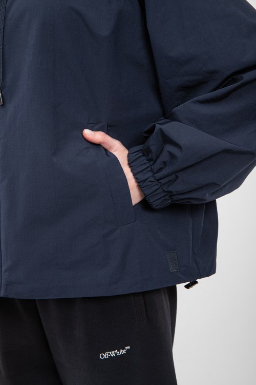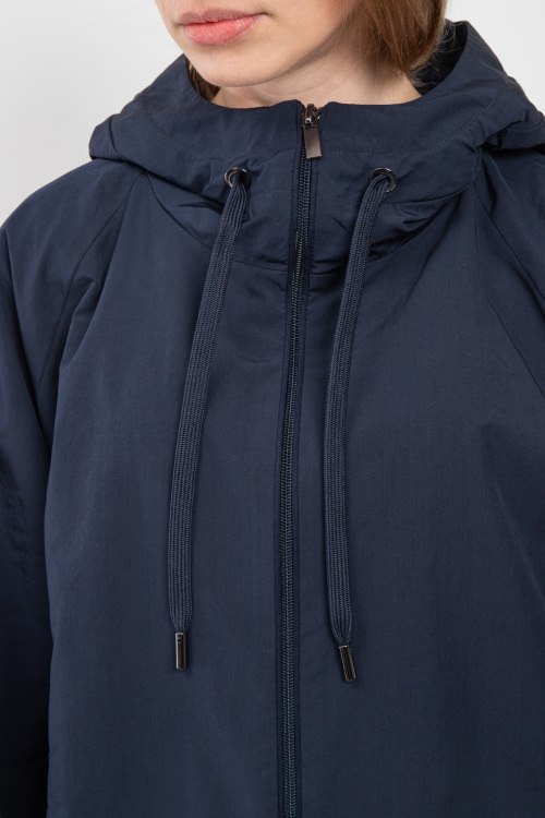 Детали: Женская темно-синяя ветровка Elis из полиэстера и хлопка от Max Mara Weekend (Макс Мара Викенд). Свободный крой, застежка на молнию, высокий воротник, вшитый капюшон с кулиской, прорезные карманы, рукава-реглан, эластичная резинка с утяжкой по низу изделия