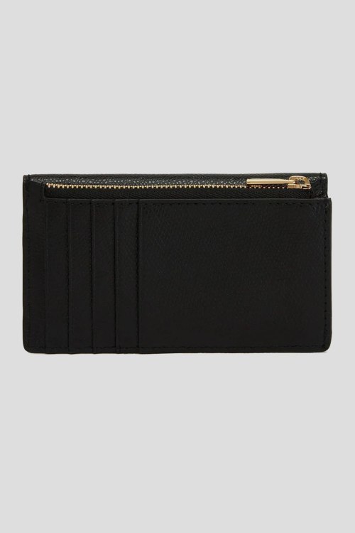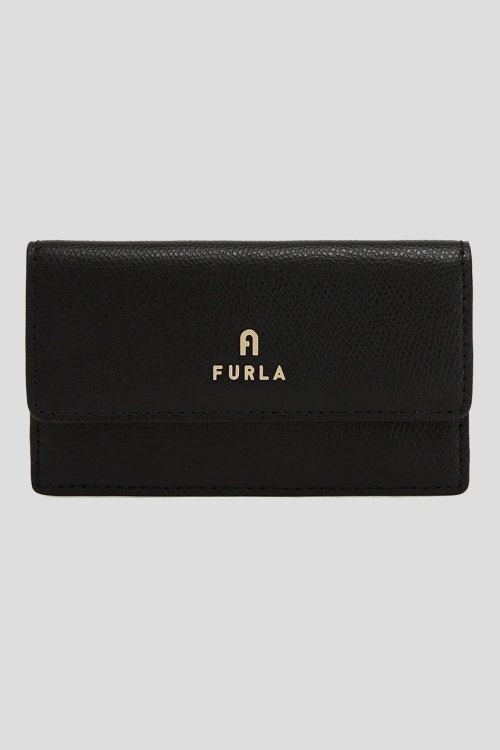 Детали: Женский черный картхолдер Camelia из натуральной кожи от Furla (Фурла). Прямоугольная форма, карман на молнии, слоты для кредитных карт, карман с клапаном на кнопке, металлический логотип бренда. Размер: ширина 13 см, глубина 1.5 см, высота 7.5 см