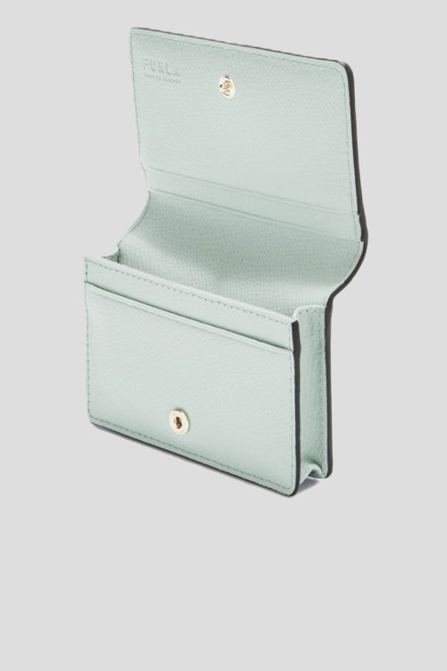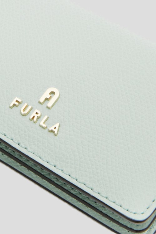 Детали: Женский нежно-голубой картхолдер Camelia из натуральной кожи от Furla (Фурла). Одно отделение, слоты для кредитных карт, дизайн с клапаном на кнопке, металлический логотип бренда. Размер:11х7х2 см