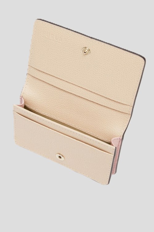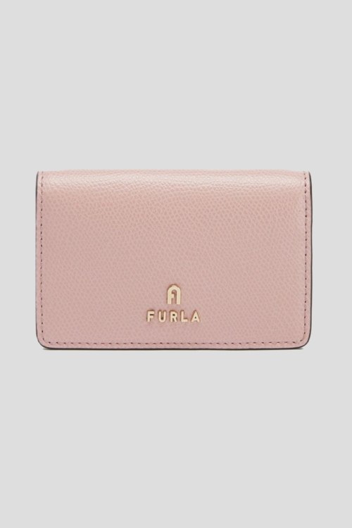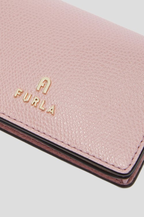 Детали: Женский пудровый картхолдер Camelia от Furla (Фурла). Одно отделение, слоты для кредитных карт, дизайн с клапаном на кнопке, металлический логотип бренда. Размер:11х7х2 см