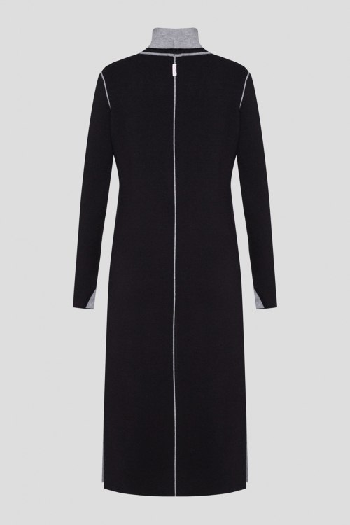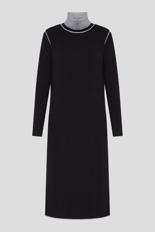 Детали: Женское черное трикотажное платье-гольф от Deha (Деха). Высокая горловина, длинный рукав, накладные передние карманы, длина-миди. Замеры: длина рукава: длинный, для размера 38 - 59 см, обхват груди: для размера 38 - 98 см, обхват талии: для размера 38 - 98 см, обхват бедер: для размера 38 - 98 см, длина изделия по среднему шву спинки от горловины: для размера 38 - 108 см