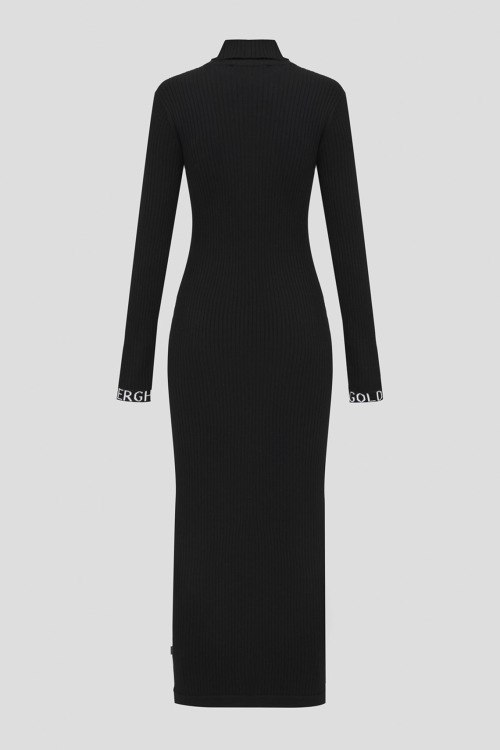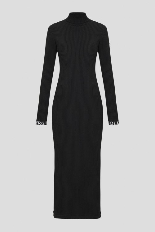 Детали: Женское черное платье из акрила и шерсти от Goldbergh (Голдберг). Облегающий силуэт, высокий воротник-стойка, приталенный силуэт, длинные рукава, логотип бренда на манжетах, ровный подол. Измерения: длина рукава: длинный, для размера S - 65 см, обхват груди: для размера S - 78 см, обхват талии: для размера S - 60 см, обхват бедер: для размера S - 78 см, длина изделия по среднему шву спинки от горловины: для размера S - 135 см