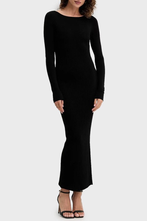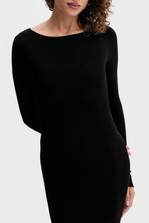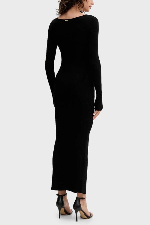 Детали: Женское черное трикотажное платье от TWINSET (Твинсет). Модель в рубчик, облегающий фасон, круглый вырез горловины, длинный рукав, длина-макси