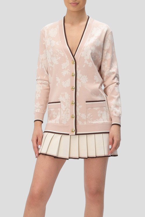 Детали: Женское пудровое платье из вискозного микса от Elisabetta Franchi (Елизабетта Франчи). Короткая длина, V-образный вырез горловины, застежка на пуговицы, плиссированная юбка, длинные рукава