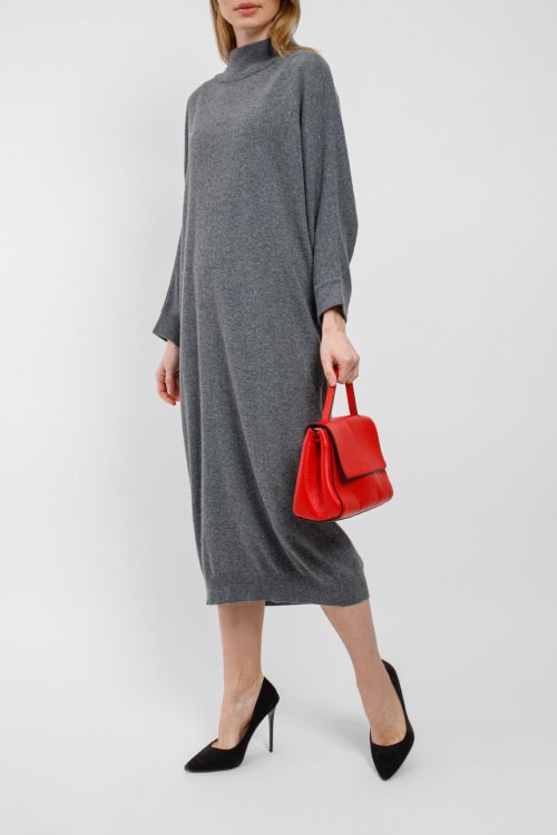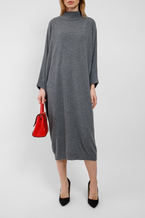 Детали: Женское трикотажное платье серого цвета из полиамида, вискозы, кашемира и шерсти от Kontatto (Контатто). Длина миди, модель oversize, воротник-стойка, длинные цельнокроеные рукава, трикотажная резинка на манжетах и по низу изделия. Модель подходит на размер S, M, L