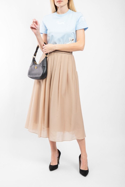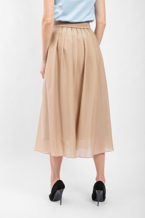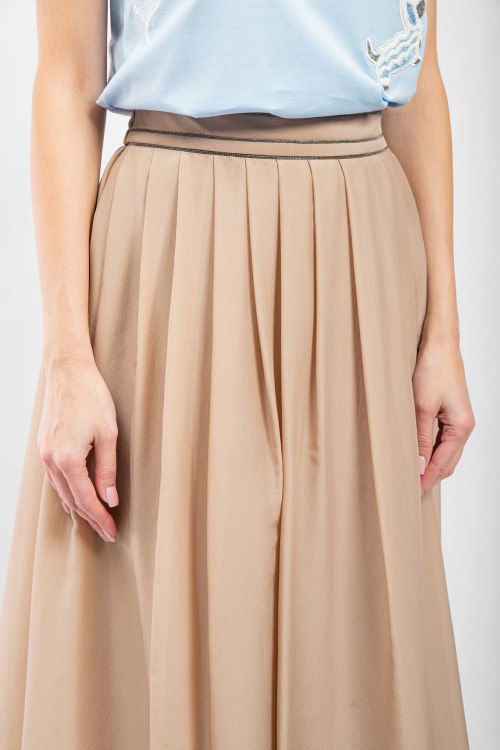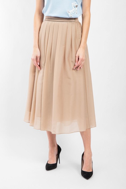 Детали: Женская бежевая юбка-миди с примесью шелка от Brunello Cucinelli (Брунелло Кучинелли). Дизайн в складку, застежка-молния сбоку, длина-миди