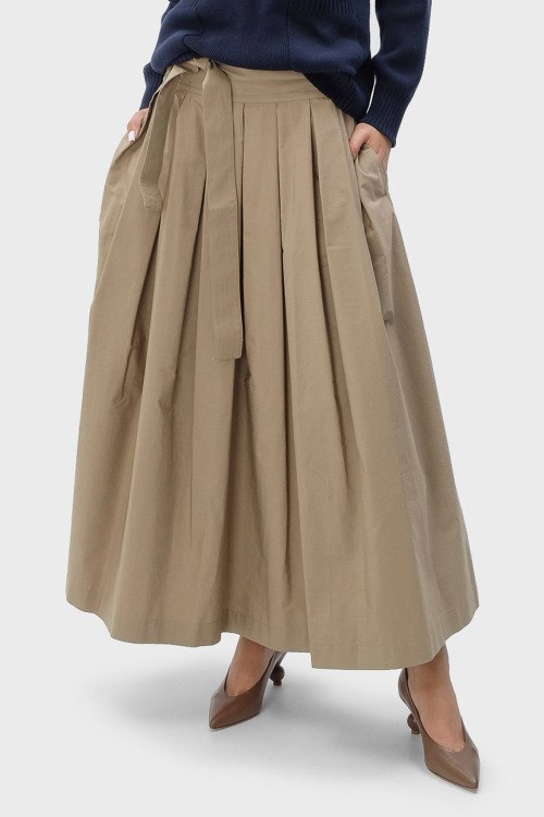 Детали: Женская бежевая хлопковая юбка Agiate от Max Mara Weekend (Макс Мара Викенд). Дизайн в крупную складку, боковые карманы, в поясе на завязках, длина-макси