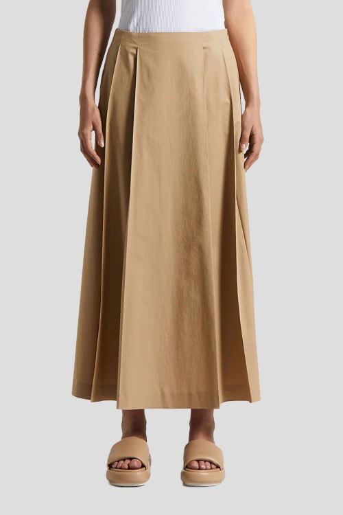 Детали: Женская бежевая юбка из хлопкового микса от Peserico (Пезерико). Длина миди, высокая посадка, прорезные карманы, расклешенная модель, ровный подол