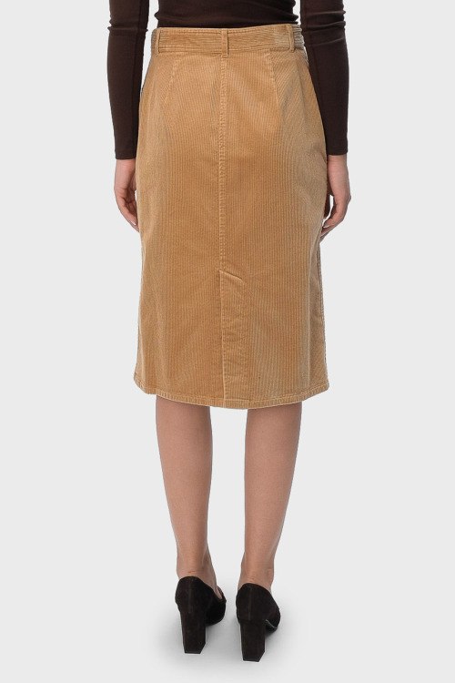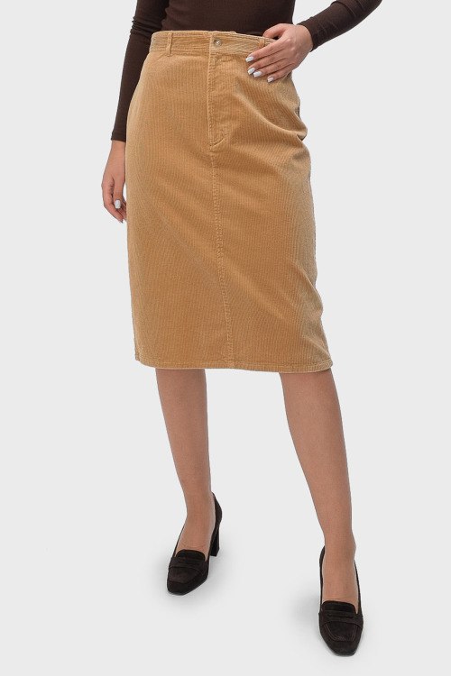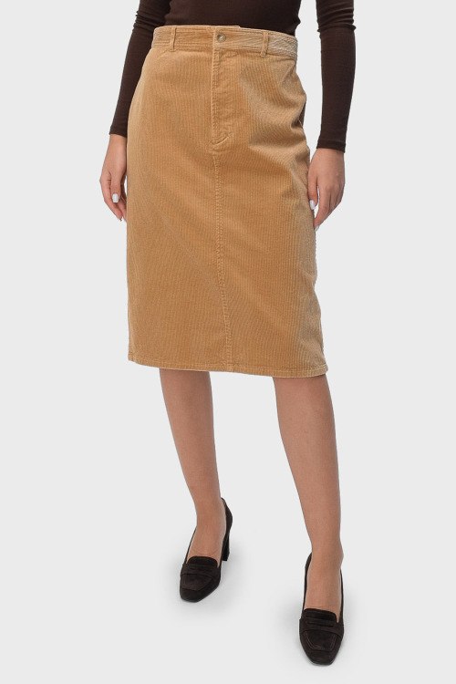 Детали: Женская бежевая вельветовая юбка из хлопкового микса от Ralph Lauren (Ральф Лорен). Длина миди, высокая посадка, застежка на молнию и пуговицу, петли в поясе для ремня