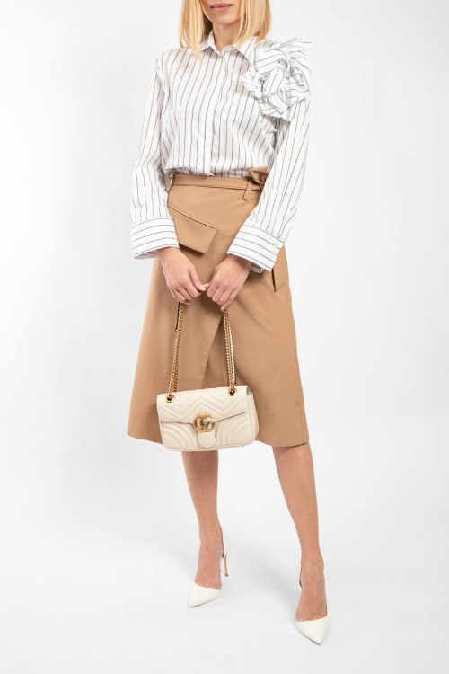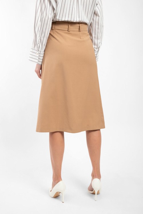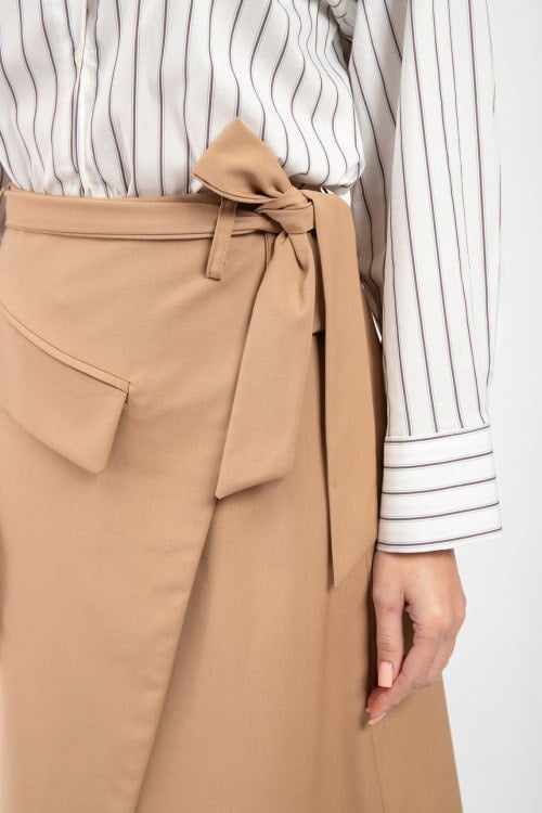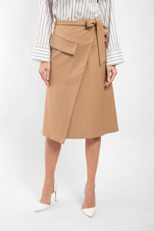 Женская бежевая юбка из ацетата и вискозы от Vicolo (Виколо). Длина, высокая посадка, модель на запах, пояс в тон изделия, ровный подол. Замеры для размера S: Длина: 73 см, талия: 32 см.