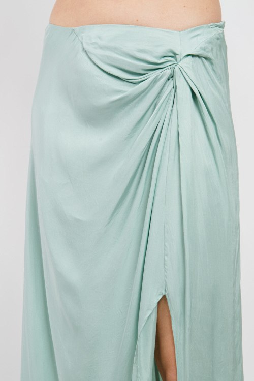 Женская бирюзовая юбка из всикозы от Isabelle Blanche (Изабель Бланш). Длина макси, средняя посадка, застежка-молния на спине, сбоку глубокий вырез.