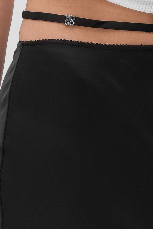 Детали: Женская черная юбка Rabene-1 из полиэстера от Hugo by Hugo Boss (Хуго бай Хуго Босс). Длина миди, высокая посадка, металлический логотип бренда, ровный подол