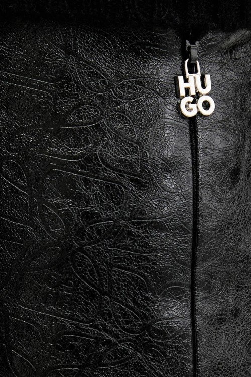 Детали: Женская черная юбка из экокожи Rantuli от Hugo by Hugo Boss (Хуго бай Хуго Босс). Узор по всей поверхности, застежка-молния, длина до колен