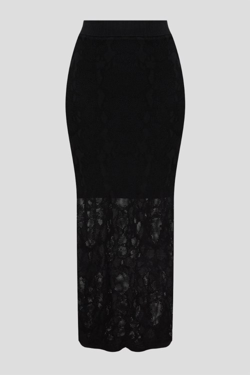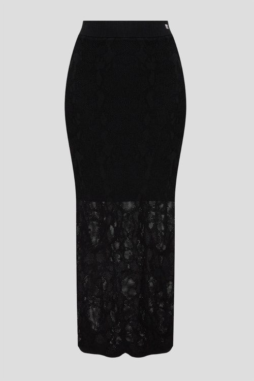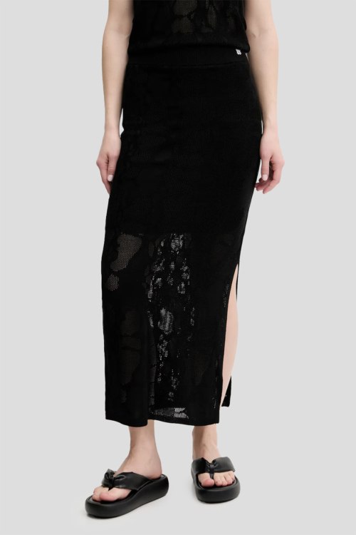 Детали: Женская черная юбка из вискозы и хлопка Seshise от Hugo by Hugo Boss (Хуго бай Хуго Босс). Полупрозрачный дизайн, эластичный пояс с логотипом, разрез сбоку
