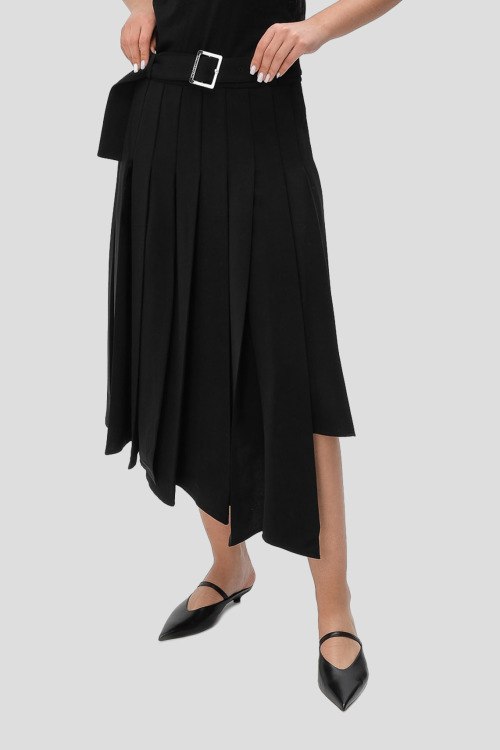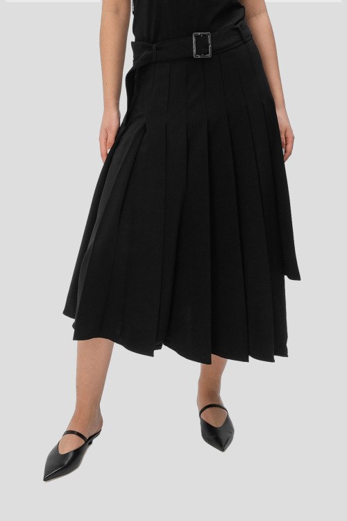 Детали: Женская черная юбка из полиэстера и эластана от Karl Lagerfeld (Карл Лагерфельд). Длина миди, плиссированный дизайн, асимметричный низ изделия, высокая посадка