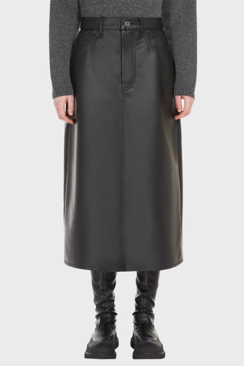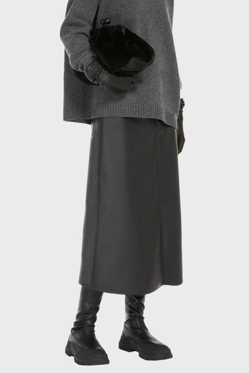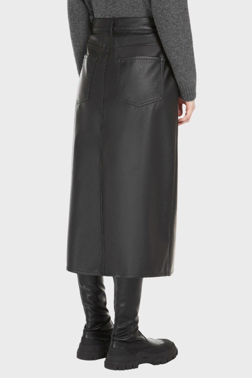 Детали: Женская черная юбка из экокожи Canga от Max Mara Weekend (Макс Мара Викенд). Пяти-карманная модель, пояс с петлями для ремня, прямой фасон, длина-миди