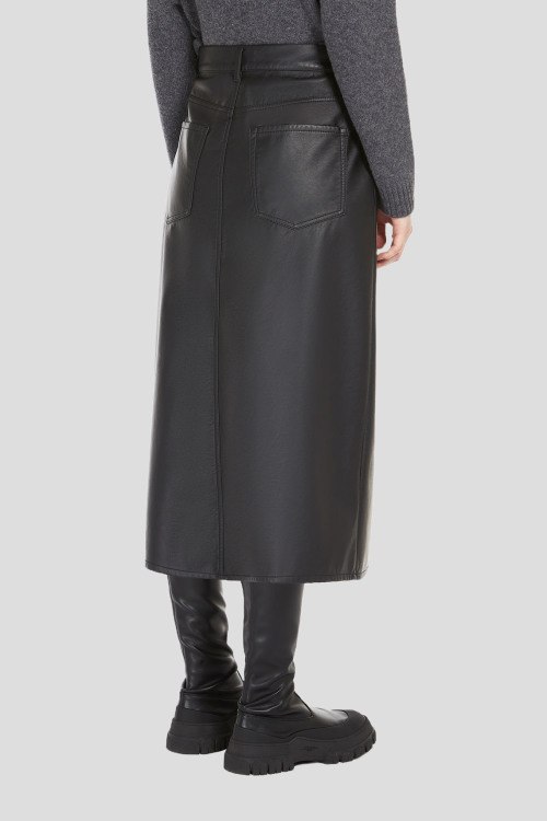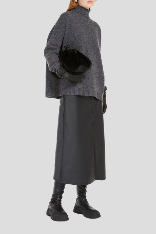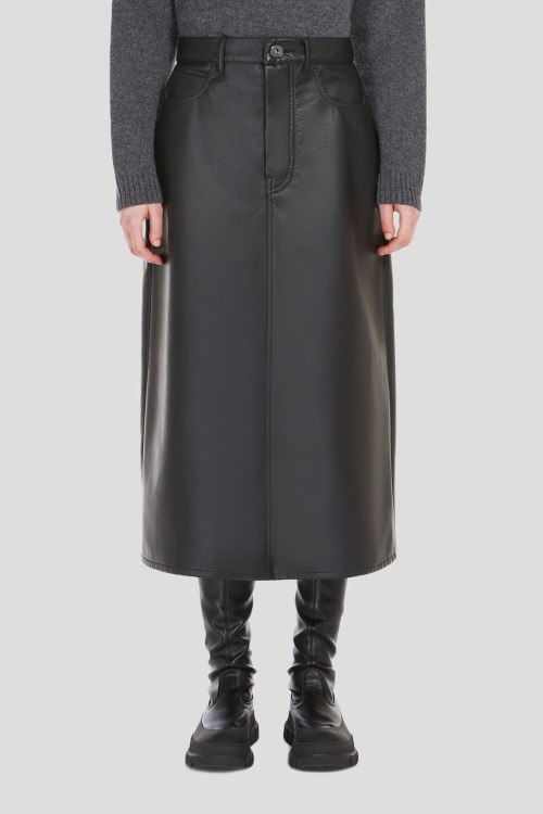 Детали: Женская черная юбка из экокожи Canga от Max Mara (Макс Мара). Пяти-карманная модель, пояс с петлями для ремня, застежка на молнию и пуговицу, длина-миди