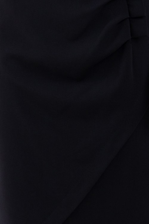 Женская черная юбка из микса вискозы от Nissa (Нисса). Длина миди, завышенная талия, сзади застежка молния, вверху декор из драпировки, внизу разрез.