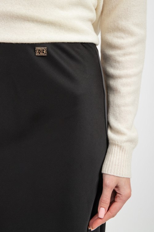 Женская черная юбка от Roberta Biagi (Роберта Бьяджи). Значок с металлическим логотипом в поясе, А-силуэт, длина-макси.