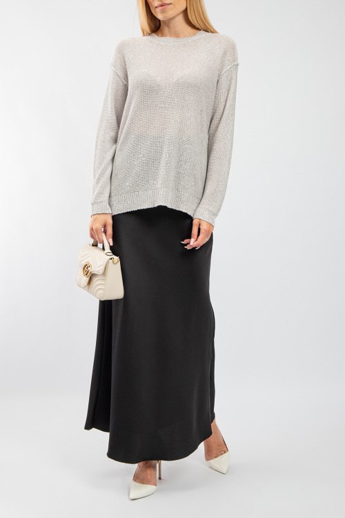 Женская черная юбка-макси из гладкой ткани от Roberta Biagi (Роберта Бьяджи). Застежка-молния сбоку, нашивка с логотипом, длина-макси. На модели снят размер - UNI. Параметры модели: рост 177 см, 88-62-90 см. Замеры: длина: 106 см, ширина по талии 33 см, ширина по бёдрам 49 см