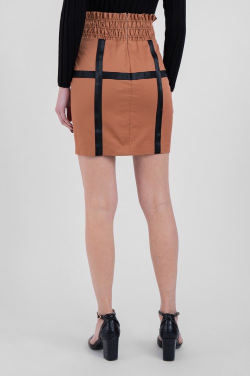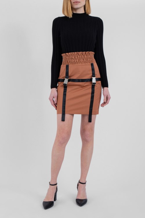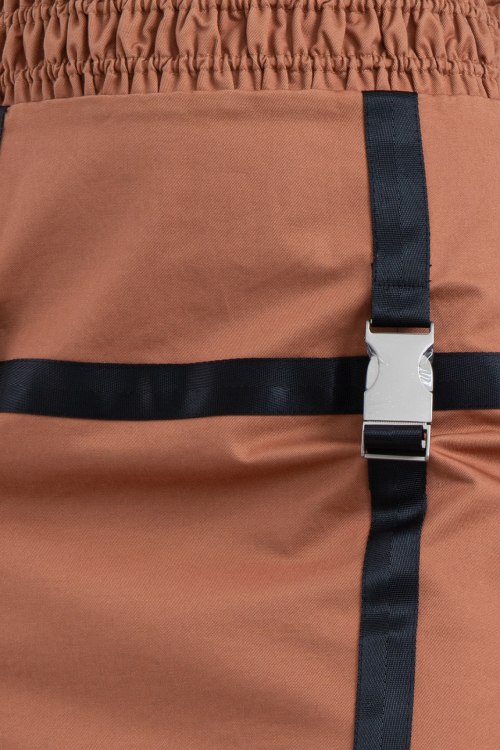 Женская терракотовая хлопковая юбка от Isabelle Blanche (Изабель Бланш). Длина мини, завышенная талия, приталенный силуэт, широкая резинка. Декор: контрастные ремешки, спереди на защелках.