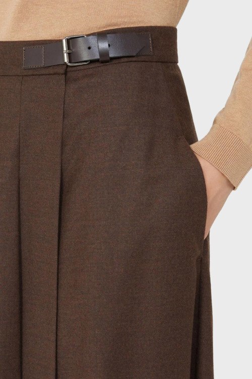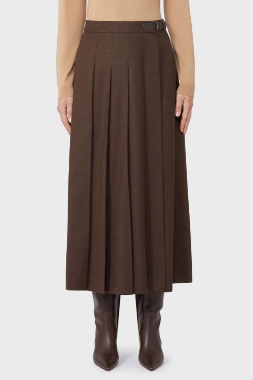 Детали: Женская темно-коричневая шерстяная юбка Fastoso от Max Mara Weekend (Макс Мара Викенд). Плиссированный дизайн, в талии застежка на пряжку, длина-миди