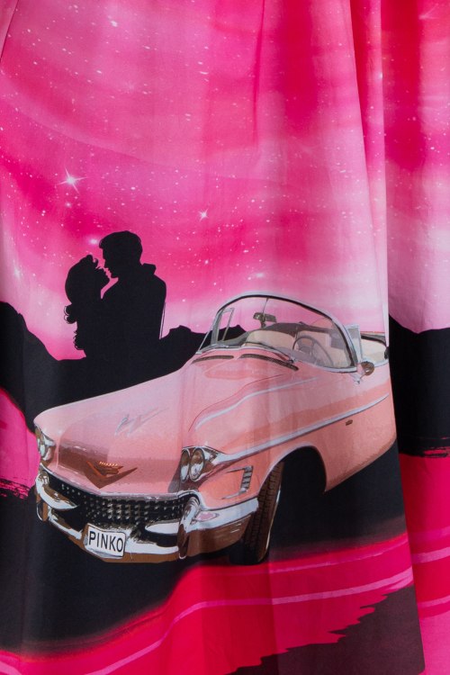 Женская малиновая юбка из хлопка от Pinko (Пинко). Длина миди, высокая посадка пояса, застежка на молнию, принт по все поверхности, ровный низ изделия.