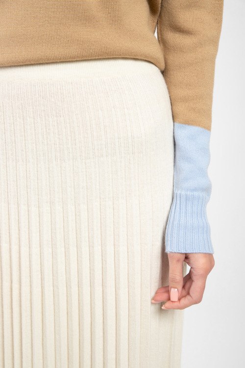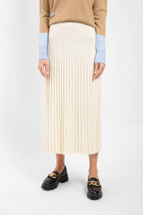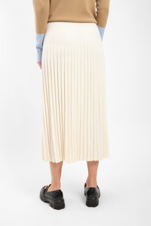 Женская юбка молочного оттенка из ацетата и вискозы от Barbara Alvisi (Барбара Алвиси). Длина миди, высокая посадка, плиссированный дизайн. Замеры для размера S-M: ширина по поясу: 35 см, ширина по бёдрам: 42 см, длина: 84 см.