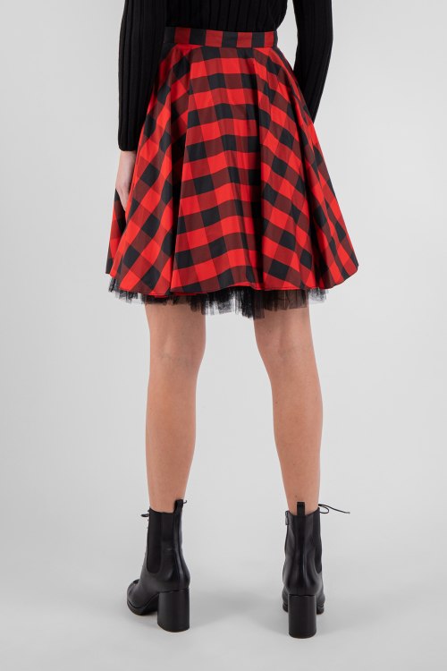 Женская пышная юбка от Pinko (Пинко). Завышенная талия, застежка-молния сбоку, принт в клетку по всей поверхности, нижний край с отделкой из фатина.