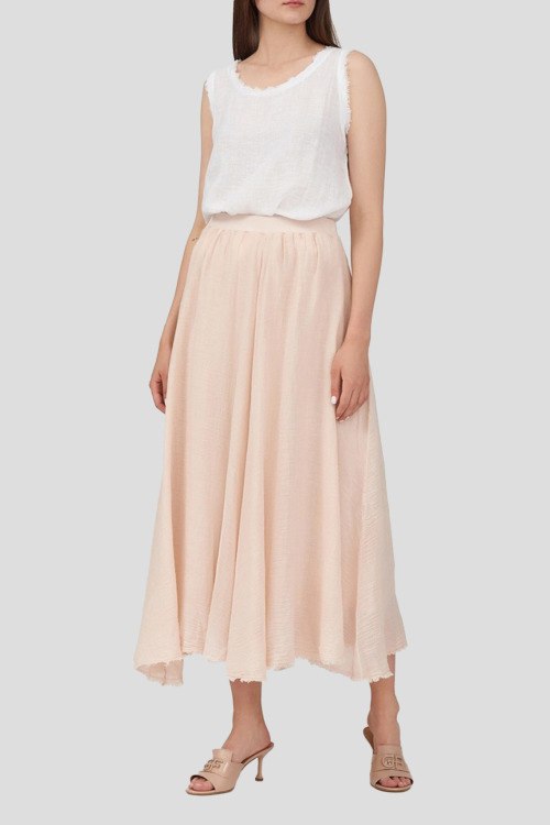 Детали: Женская пудровая юбка из хлопка и льна от Deha (Деха). Эластичный пояс, нашивка с логотипом сзади, необработанный нижний край, длина-миди. Параметры модели: 78-62-92, рост 179 см. На модели надет: S размер