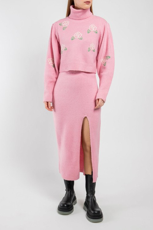Детали: Женская розовая юбка из микса акрила и полиамида от No Secrets (Ноу Сикретс). Длина миди, высокая посадка, эластичная резинка на поясе, боковой разрез, ровный подол, нашивка с логотипом бренда