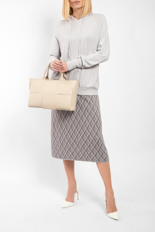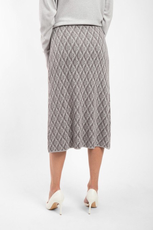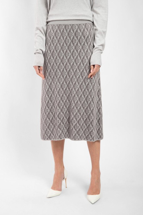 Женская серая юбка миди из вискозы и акрила от Barbara Alvisi (Барбара Алвиси). Длина миди, высокая посадка, эластичная резинка на поясе, дизайн с монограммой. Замеры для размера S-M: Длина: 76 см, ширина по талии: 33,5 см, ширина по бёдрам: 43 см.