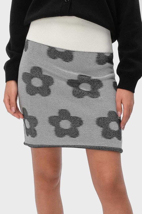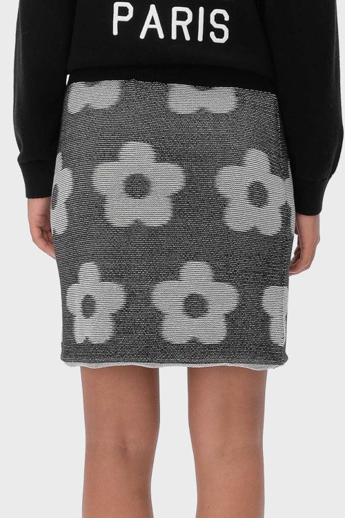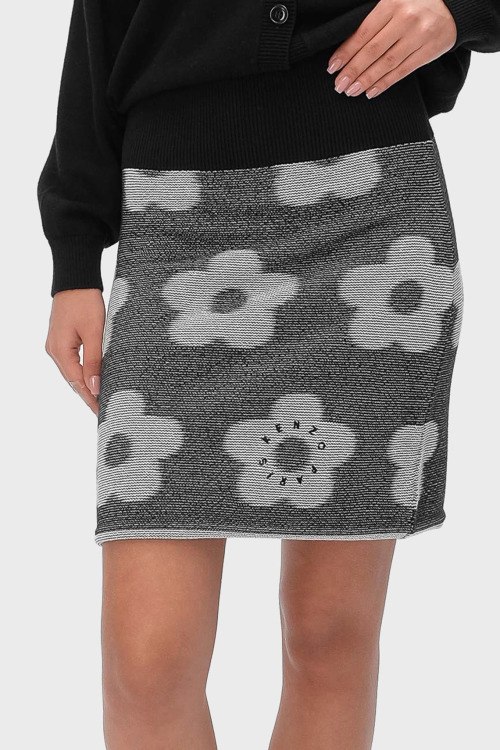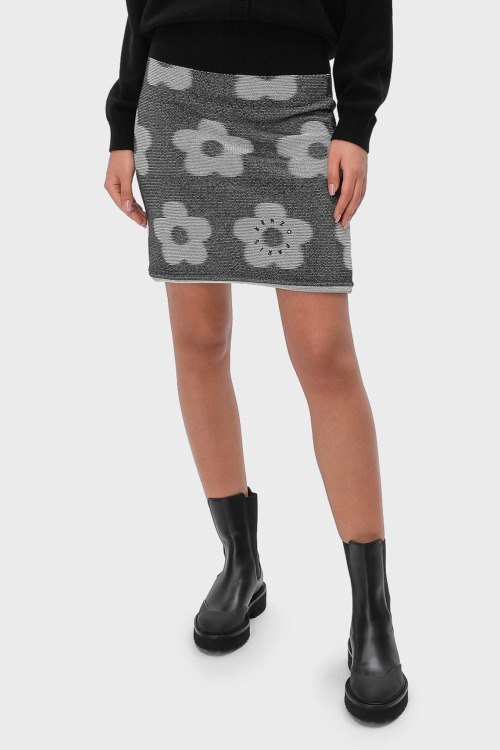 Детали: Женская серая юбка из хлопка от Kenzo (Кензо). Короткая длина, высокая посадка, двухсторонняя модель, цветочный принт по всей поверхности изделия