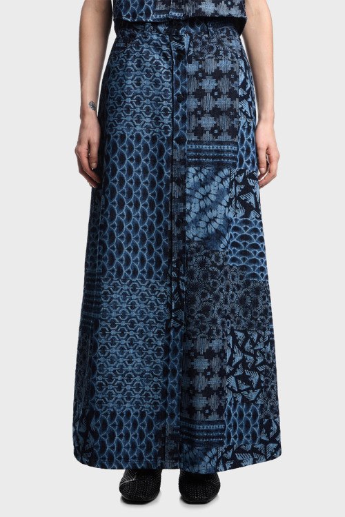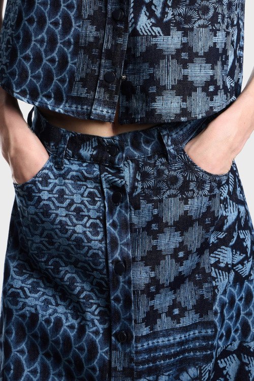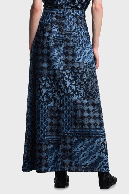 Детали: Женская темно-синяя джинсовая юбка из хлопка от Emporio Armani (Эмпорио Армани). Длина макси, высокая посадка, застежка на пуговицы, четыре кармана, дизайн с узором, петли в поясе для ремня