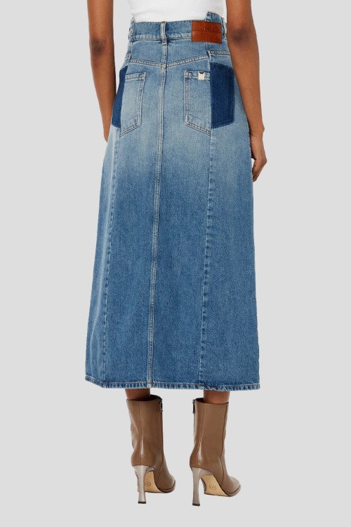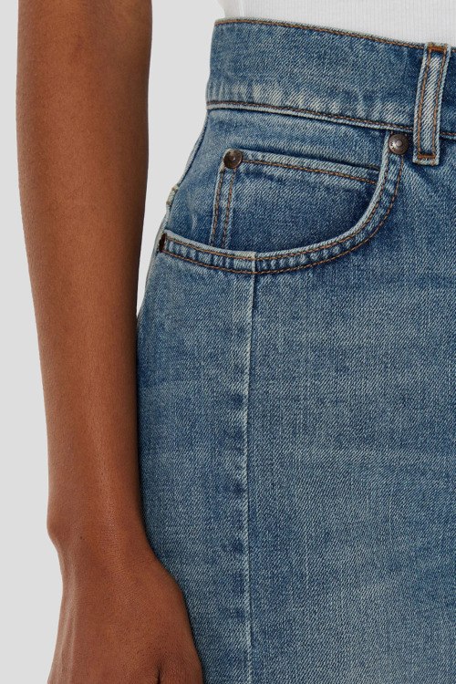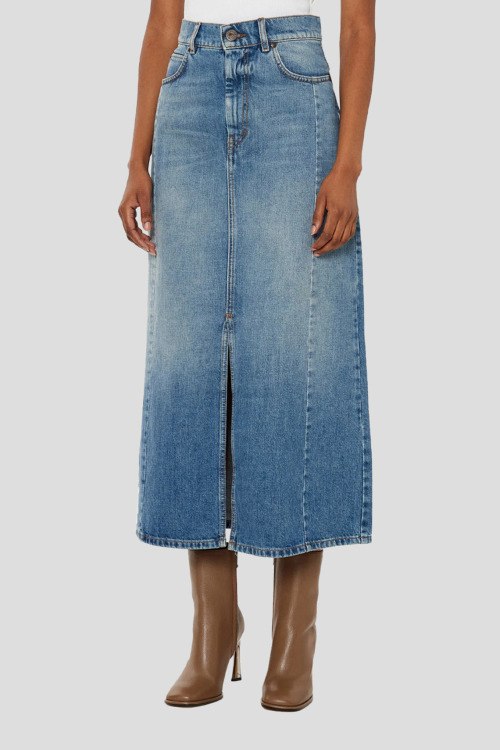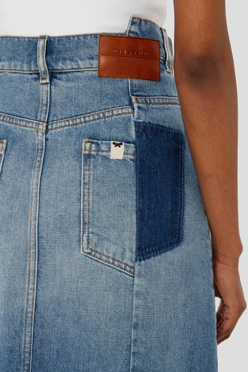 Детали: Женская синяя джинсовая юбка Gesso из хлопка от Max Mara Weekend (Макс Мара Викенд). Длина миди, высокая посадка, застежка на молнию и пуговицу, пять карманов, петли в поясе для ремня, патч-лого, разрез спереди