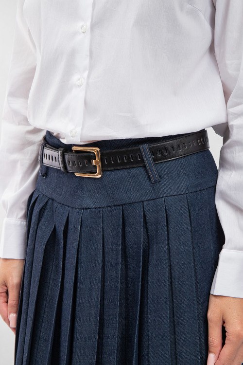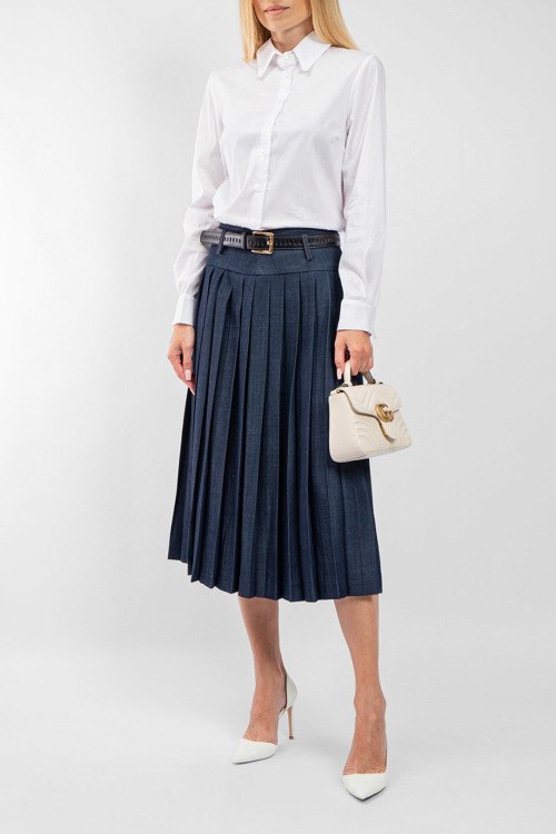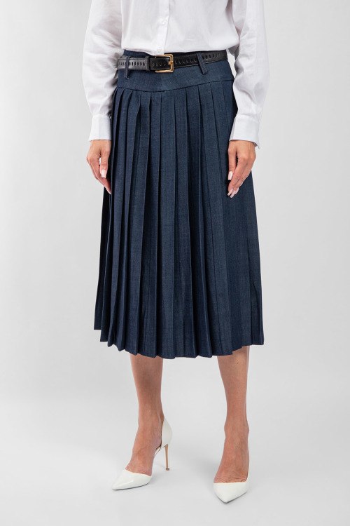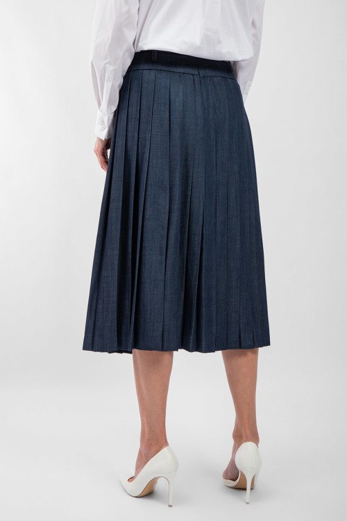 Женская темно-синяя юбка из лиоцелла от Kocca (Кокка). Плиссированный дизайн, в талии с черным поясом, длина-миди.