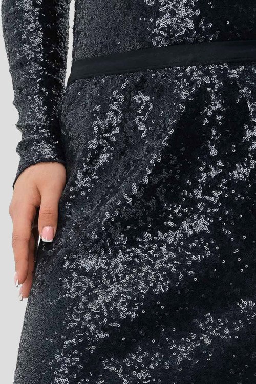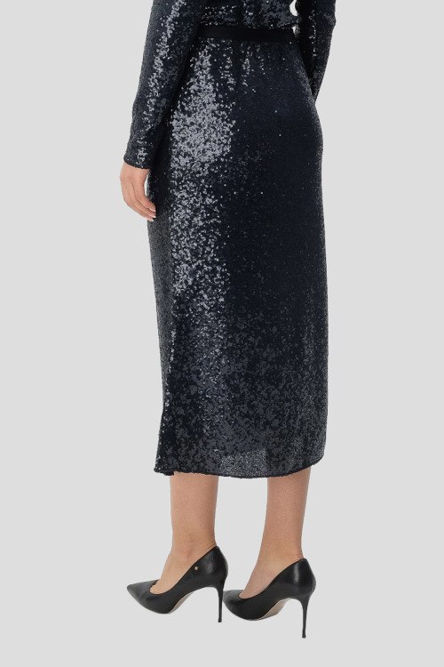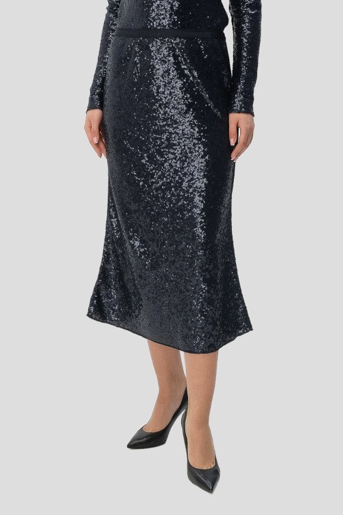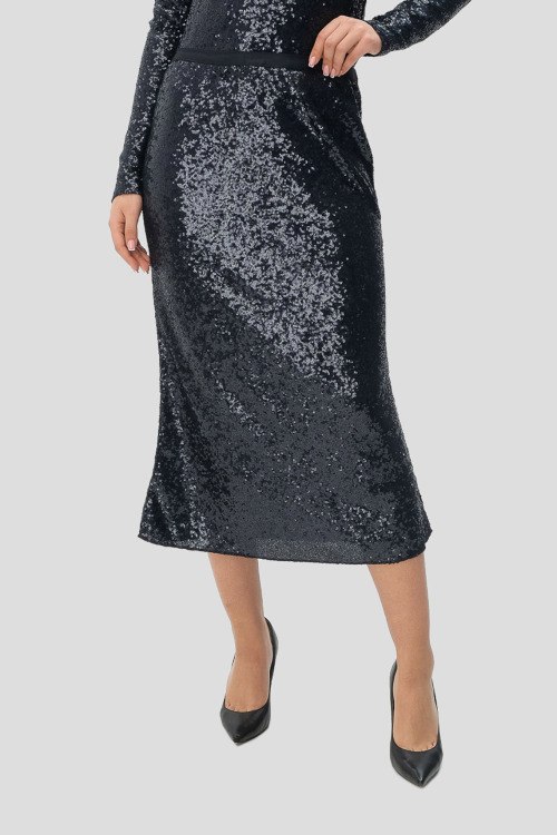 Детали: Женская темно-синяя юбка из полиэстера от Polo Ralph Lauren (Поло Ральф Лорен). Длина миди, высокая посадка, эластичная резинка на поясе, ровный подол, модель декорирована пайетками по всей поверхности изделия