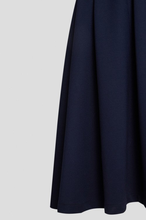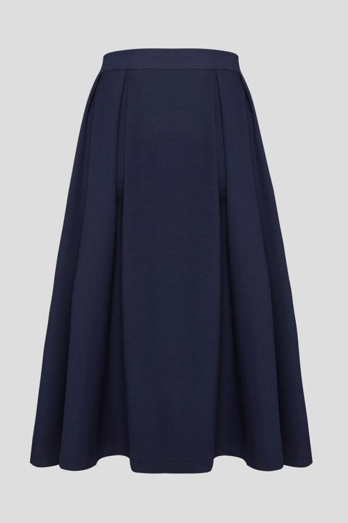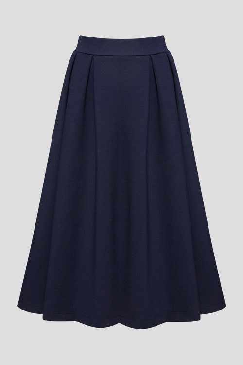 Детали: Женская темно-синяя трикотажная юбка от Rich & Royal (Рич энд Роял). Модель А-силуэта, эластичный пояс, длина-миди. Обхват пояса: для размера S - 66 см, обхват бедер: для размера S - 176 см, длина изделия по среднему шву спинки: для размера S - 77 см