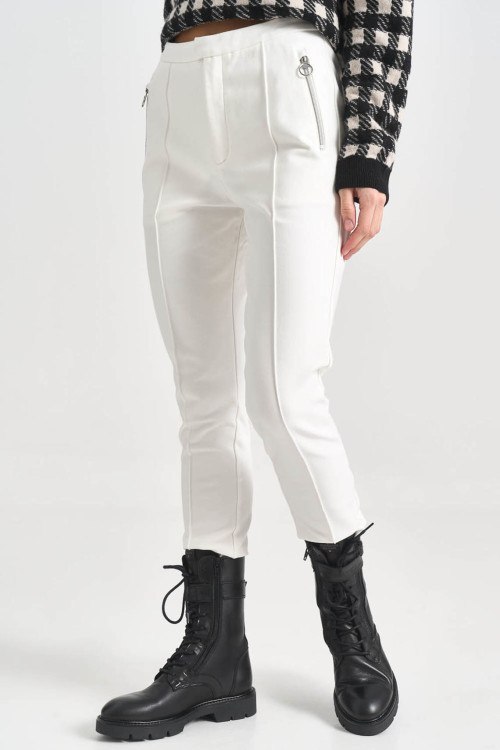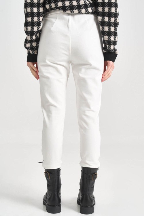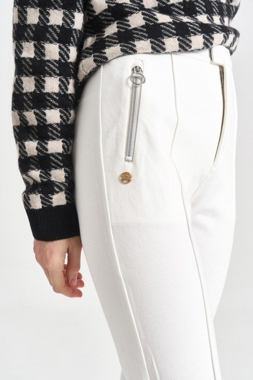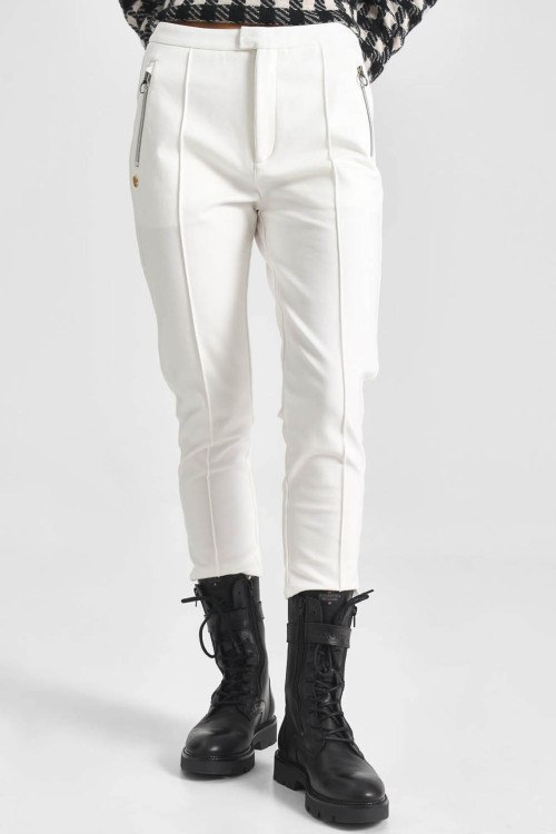 Детали: Женские белые зауженные брюки из вискозы от La Martina (Ла Мартина). Боковые карманы на молнии, нашивка с логотипом, узкий крой. Параметры модели: 83 см - 60 см - 90 см. Рост - 167 см. Размер на фото - 2