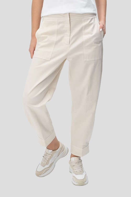 Детали: Женские бежевые брюки из хлопкового микса от Peserico (Пезерико). Укороченная длина, высокая посадка, застежка на молнию, прорезные карманы