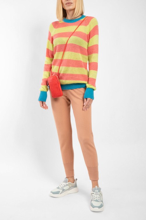 Женские персиковые брюки из вискозного микса от Kontatto (Контатто). Зауженная модель, высокая посадка, эластичная резинка на поясе с кулиской, прорезные карманы. Замеры для размера UNI: брюки: длина: 101 см, ширина по талии: 36 см, ширина по бёдрам 39 см, высота сидения: 32 см, ширина штанины вверху: 26 см.